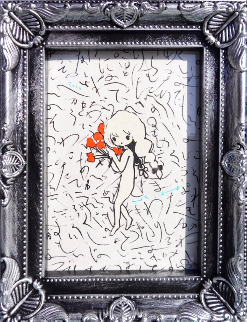 黄菊しーくによるフレーム付きの手描き作品です。