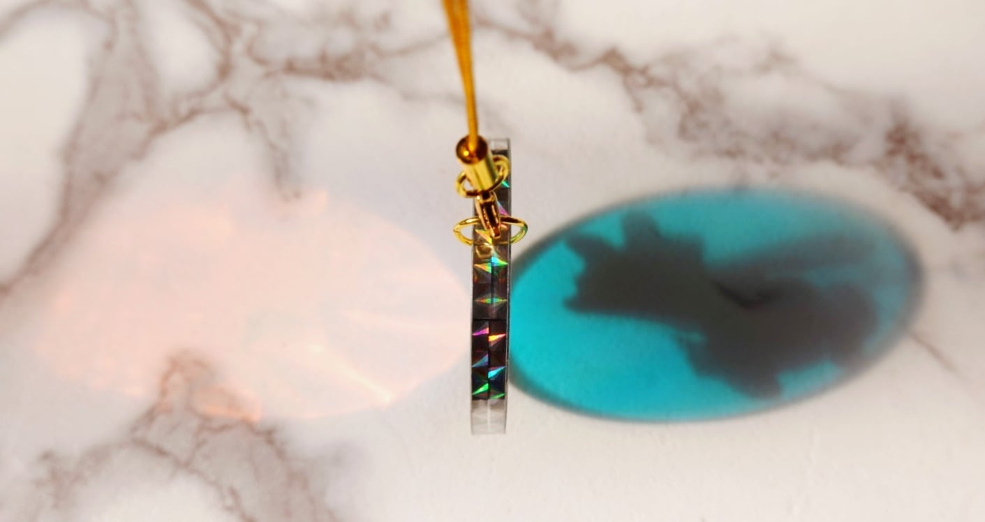 立体感と、光や角度により変化する背景色が楽しめます。