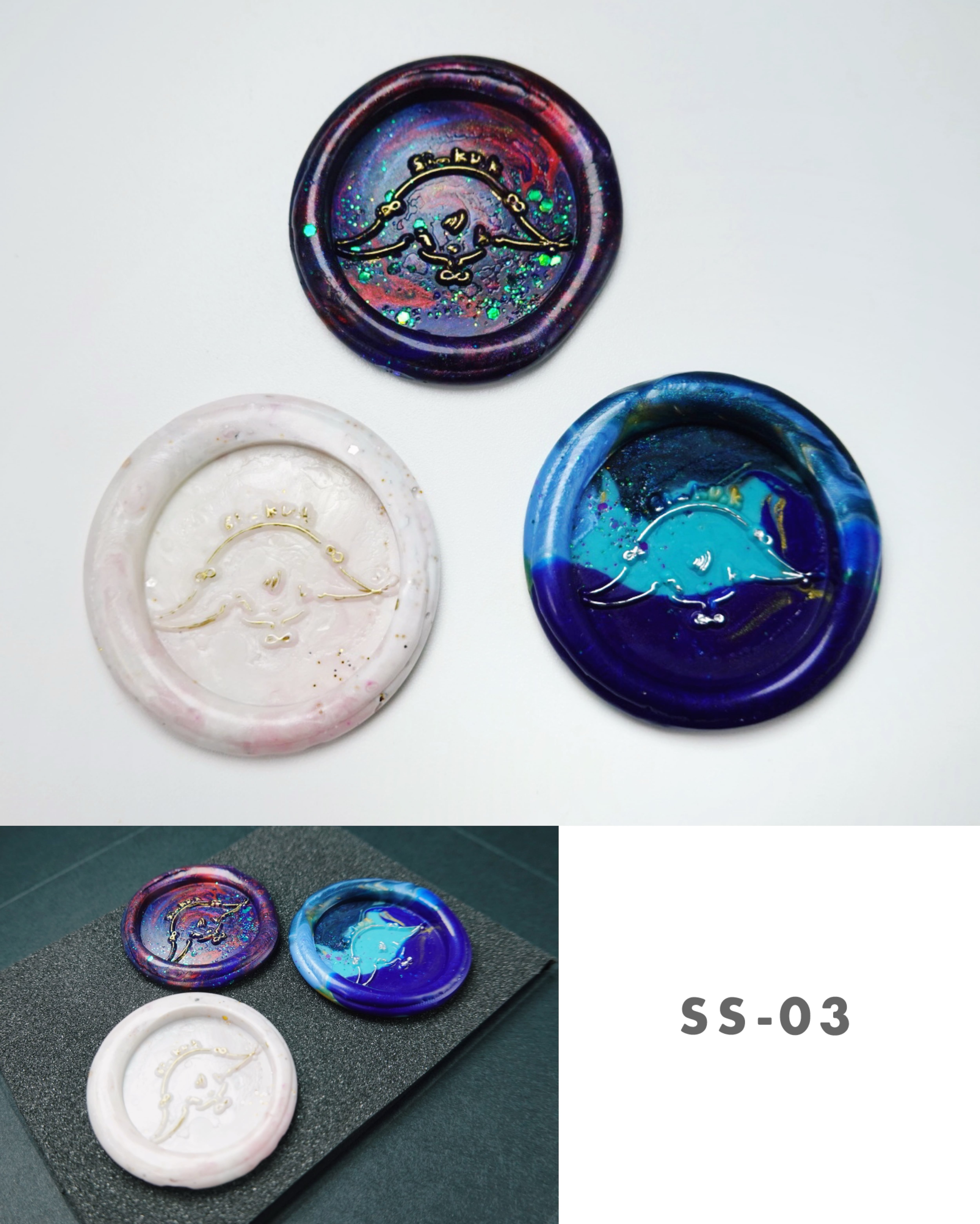 These sealing wax seals are inspired by the colors found in si_ku.k's paintings.